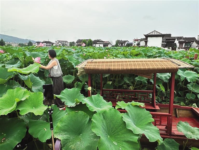 荷香時(shí)節(jié),游客到胡家塘游玩賞荷。 團(tuán)結(jié)報(bào)全媒體記者 張謹(jǐn) 攝