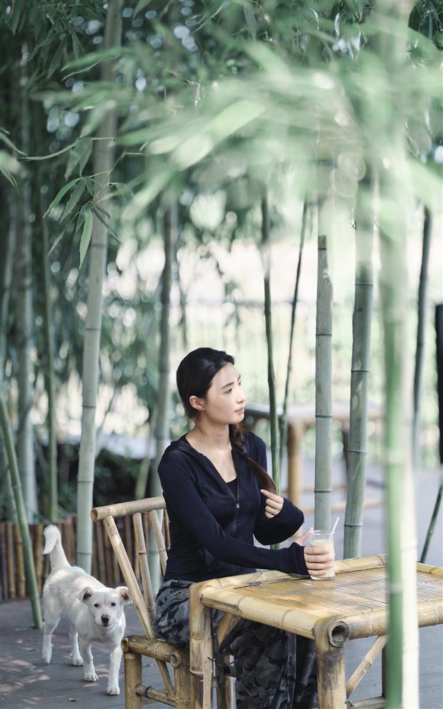 初入“仟畝”,陽光透過竹葉投下斑駁光影,竹林間的竹編小桌上一壺普洱茶香氣彌散,周明霞坐在桌前,悠然品茶。這一幕,恰是她心境的生動寫照——擁抱不完美,卸下焦慮,讓靈魂自在呼吸。