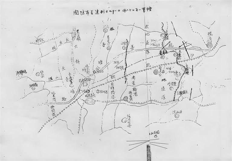 陸軍第一百二十八師十一月九日到達后布防圖。(原件存于中國第二歷史檔案館)