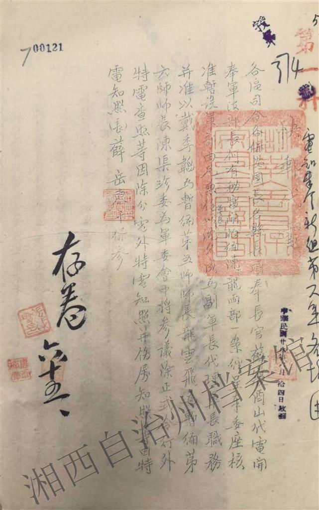 1938年3月,革屯抗日軍共約8000人,先被整編為湖南省新編保安部隊(duì),后在桃源整訓(xùn)擴(kuò)編為國民革命軍暫編第五師、暫編第六師。1939年初,兩師合組新編第6軍,納入第九戰(zhàn)區(qū)序列,開赴抗日前線。先后參加第一、二、三次長沙會(huì)戰(zhàn),濱湖戰(zhàn)役、鄂西會(huì)戰(zhàn)、常德會(huì)戰(zhàn)、湘西會(huì)戰(zhàn),他們?yōu)榇輾Ц嗤驼⒑葱l(wèi)國土尊嚴(yán)所付出的巨大犧牲,在湘西地方史和中國抗日戰(zhàn)爭史上,永遠(yuǎn)占據(jù)重要的一頁。(文圖由湘西州檔案館、花垣縣檔案館提供)