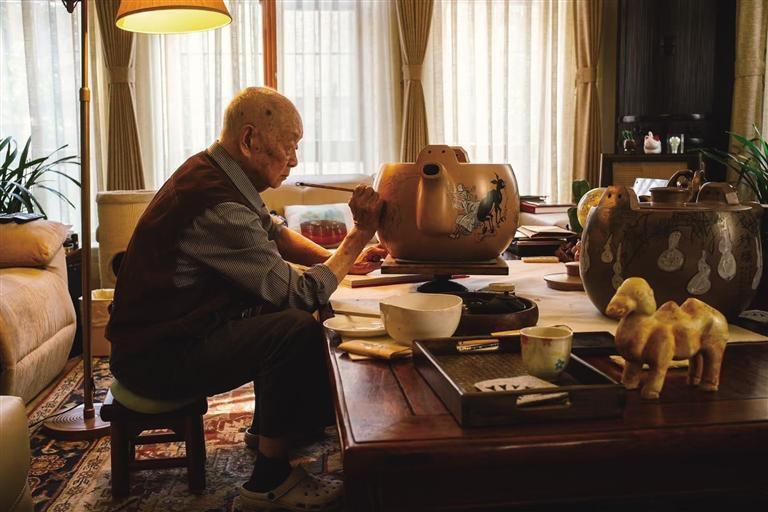 黃永玉先生做過許多不同門類的創作,但是畫宜興紫砂壺的情結,一直不曾放棄。2016年4月18日起,他專門到宜興,畫壺32天。