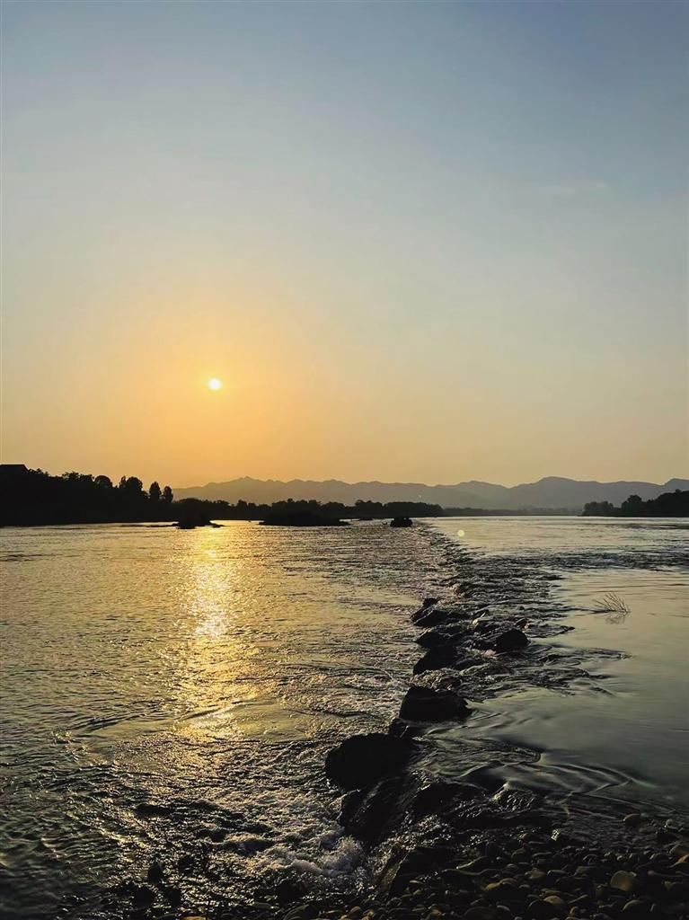 漫步道上,香樟樹下三三兩兩的行人或駐足賞景,或拍照留念。老石頭的二胡聲與江水應(yīng)和,幾個老人下棋時“將!軍!”的喝彩驚飛了灘涂上的白鷺。這時,城市廣場的音樂聲隱約飄來,《最炫民族風(fēng)》的節(jié)奏融入了粼粼波光之中。