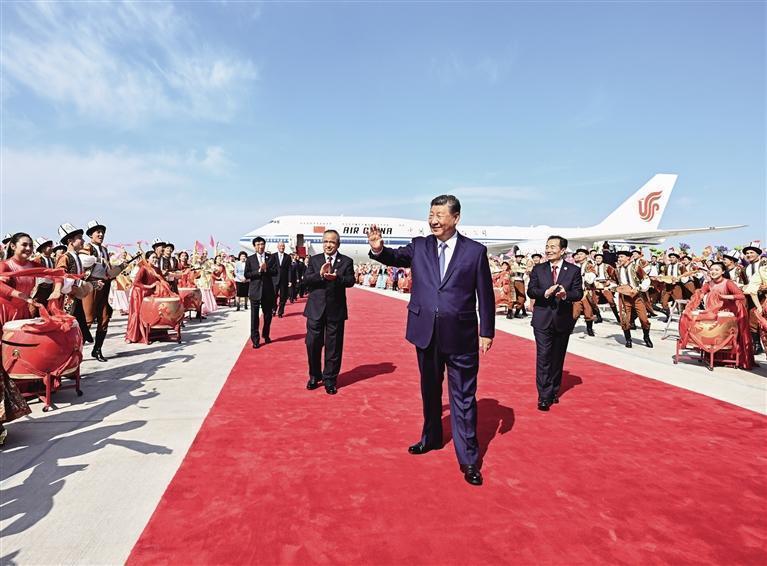 擔任中央代表團副團長的中共中央政治局委員、中央統戰部部長李干杰,全國人大常委會副委員長雪克來提·扎克爾,國務委員諶貽琴,全國政協副主席王東峰,中央軍委委員劉振立,陪同出席活動的中共中央政治局委員、國務院副總理何立峰,中共中央書記處書記、國務委員王小洪等同機抵達。