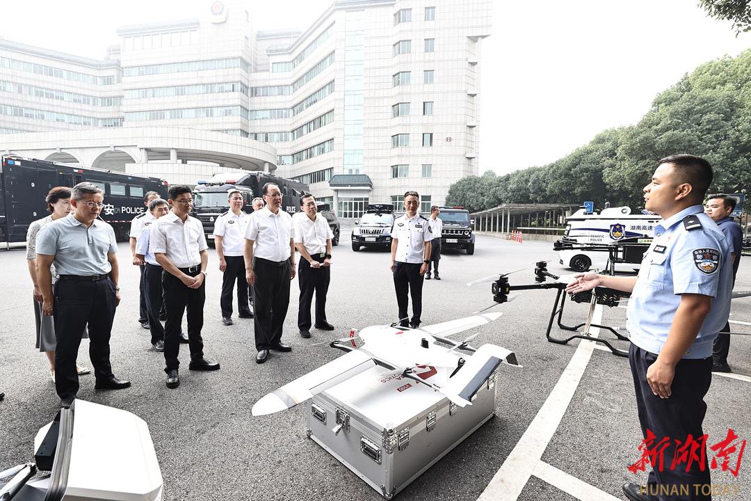 毛偉明查看新型警務(wù)裝備。