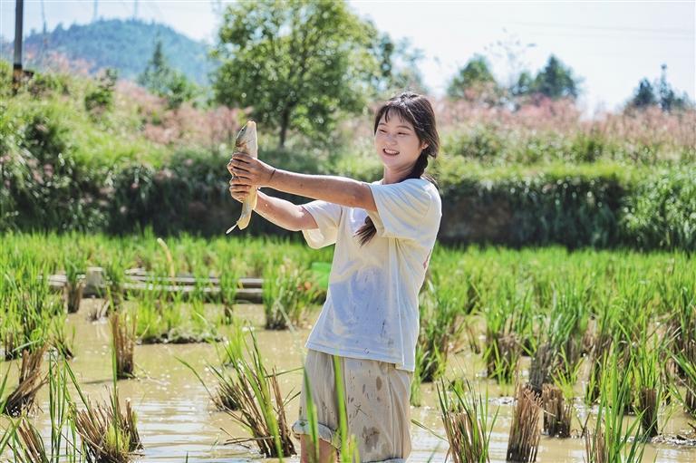 稻田里一片歡聲笑語(yǔ),一幅唯美的田園畫卷徐徐展開(kāi)。市民游客挽起褲腳,踩進(jìn)泥土,彎腰摸索、追逐魚兒,連空氣都是幸福的味道。稻花魚養(yǎng)殖是吉信鎮(zhèn)特色產(chǎn)業(yè),稻花魚以稻田里的稻花、雜草等為食,肉質(zhì)鮮嫩,營(yíng)養(yǎng)豐富,深受群眾喜愛(ài)。舉辦捉稻花魚活動(dòng),既能充分展示滿家村的鄉(xiāng)村風(fēng)貌和特色產(chǎn)業(yè),讓游客沉浸式感受鄉(xiāng)村魅力,還能促進(jìn)農(nóng)旅消費(fèi),帶動(dòng)鄉(xiāng)村旅游發(fā)展。