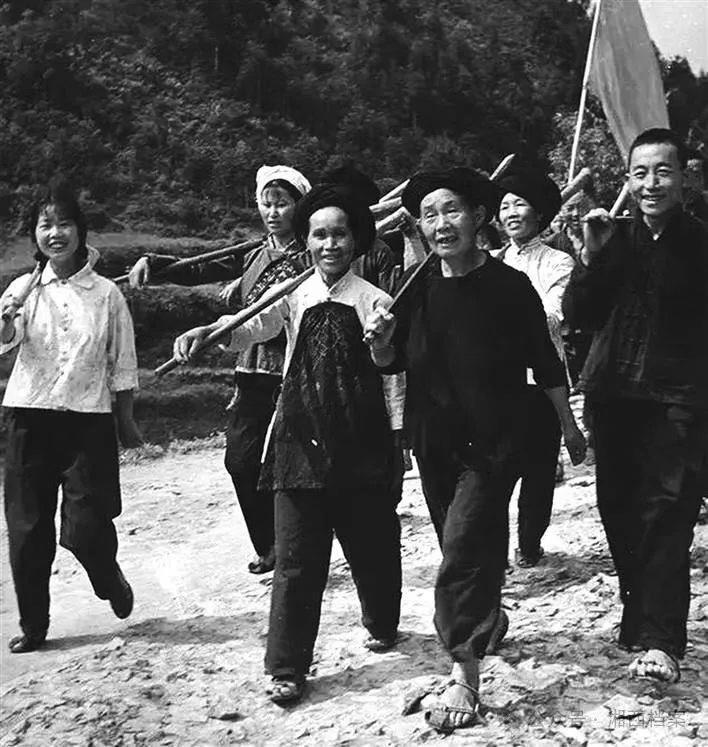 楊玉翠(右二)帶領(lǐng)社員去水利工地。