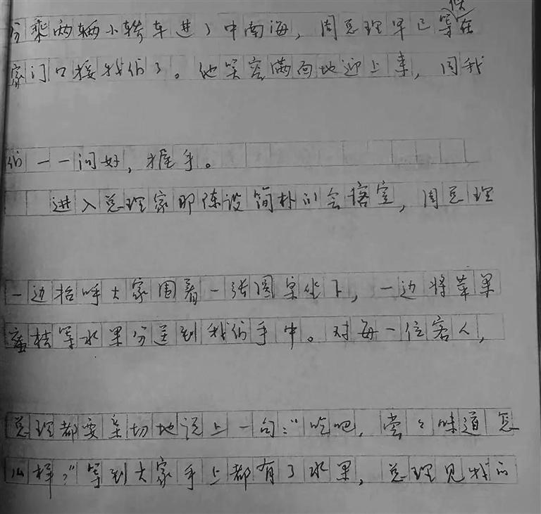 工作人員整理的楊玉翠回憶在周總理家做客的文字資料。
