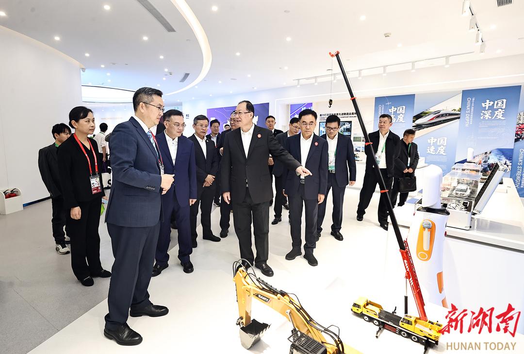 進(jìn)博會(huì)湖南常設(shè)館聚焦“開(kāi)放湖南, 湘遇世界”主題,以山水為幕、以人文為脈、以智造為橋,組織60余家湘企整裝亮相,布展面積較上一屆增加了一倍。毛偉明饒有興致地參觀展陳,勉勵(lì)大家精心打造“湖南城市會(huì)客廳”,更好發(fā)揮展洽聯(lián)動(dòng)作用,全方位展示“湘”品形象、立體式講好湖南故事、精準(zhǔn)化對(duì)接全球資源。