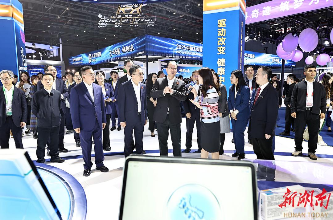 在醫(yī)療器械及醫(yī)藥保健展區(qū),毛偉明一行先后參觀了飛利浦、諾和諾德、諾華、拜耳等企業(yè)展臺(tái),了解新技術(shù)、新產(chǎn)品、新服務(wù),現(xiàn)場(chǎng)推介湖南投資機(jī)遇。他說(shuō),生物醫(yī)藥與醫(yī)療器械產(chǎn)業(yè)是湖南13條重點(diǎn)推進(jìn)產(chǎn)業(yè)鏈之一。誠(chéng)邀大家來(lái)湘共促技術(shù)變革、共拓產(chǎn)業(yè)空間,與湖南高質(zhì)量發(fā)展同頻共振、在未來(lái)賽道攜手奔跑。