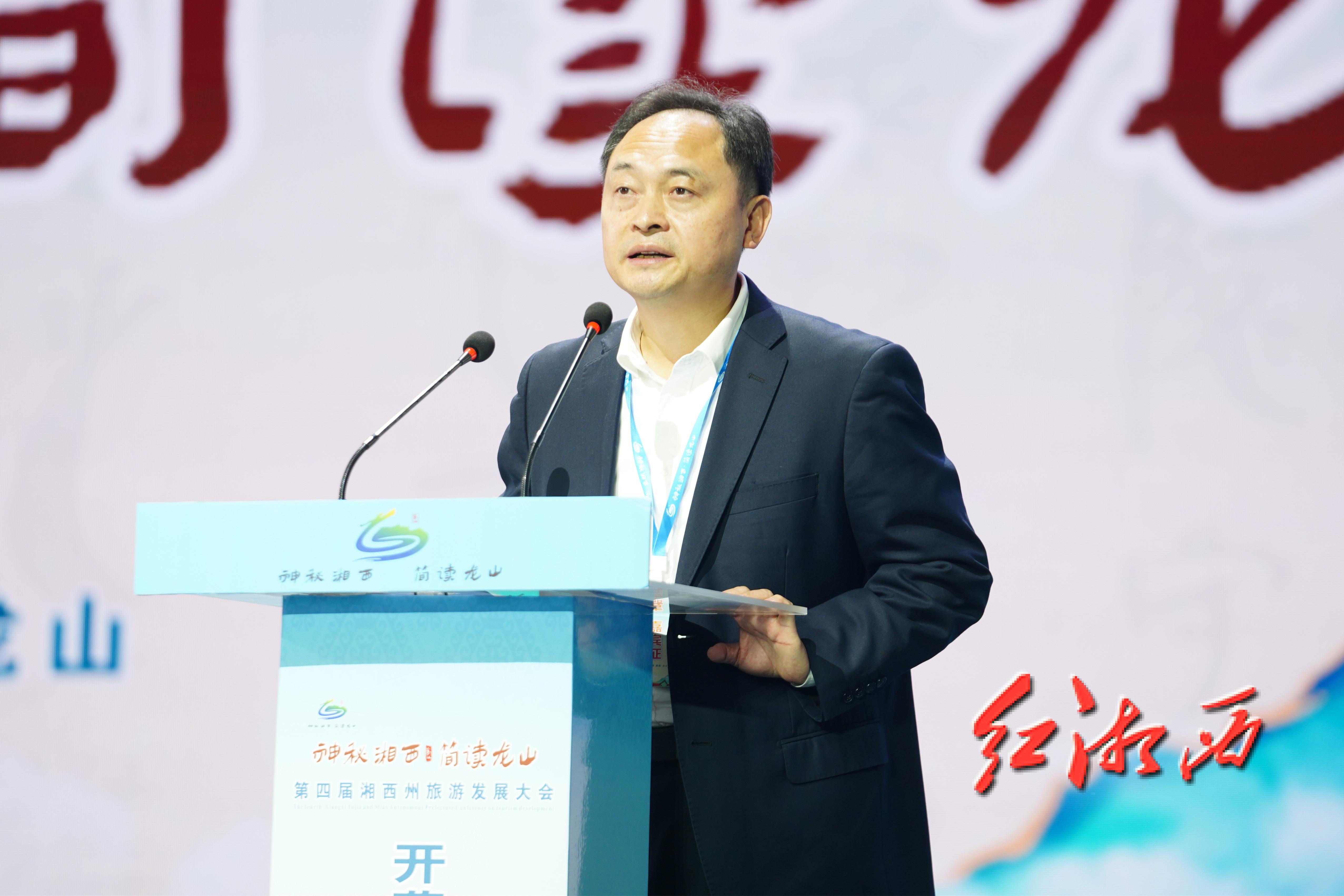 劉濤代表州委、州政府向參加此次旅發(fā)大會的嘉賓表示歡迎。他說,湘西,是一個山川風(fēng)物均可入畫的地方。群山秀麗,溝壑縱橫之間,勾勒出心醉神迷的畫卷。湘西,是一個田園牧歌寫意鄉(xiāng)愁的地方。每一種田園風(fēng)光和民族風(fēng)情,都是文化的綻放、歷史的沉淀、湘西的名片。湘西,是一個滿載光榮與夢想的地方。無數(shù)湘西兒女用鮮血和生命捍衛(wèi)民族獨立,書寫了可歌可泣的英雄史詩。神秘湘西,簡讀龍山。這里發(fā)掘的三萬八千枚里耶秦簡,書寫九州一統(tǒng)的歷史傳奇,印鑒中華文化的源遠(yuǎn)流長。茨巖塘流傳紅二方面軍轉(zhuǎn)戰(zhàn)湘西的英勇事跡,詮釋了“星星之火,可以燎原”的精神。烏龍山大峽谷用億萬年風(fēng)光讓奇洞、奇山、奇水成為景觀一絕。特色村寨惹巴拉,三山套三河、三河繞三寨,靈動展現(xiàn)武陵山區(qū)最完整的原始土家文化。來到龍山,總有一處讓人沉醉。山水有相逢,來日皆可期。湘西州正致力打造國內(nèi)外知名生態(tài)文化旅游區(qū)。劉濤向社會各界發(fā)出邀請,誠邀大家常來湘西共享文旅盛宴,共尋詩與遠(yuǎn)方,共謀美好未來,并宣布第四屆湘西州旅游發(fā)展大會正式開幕。