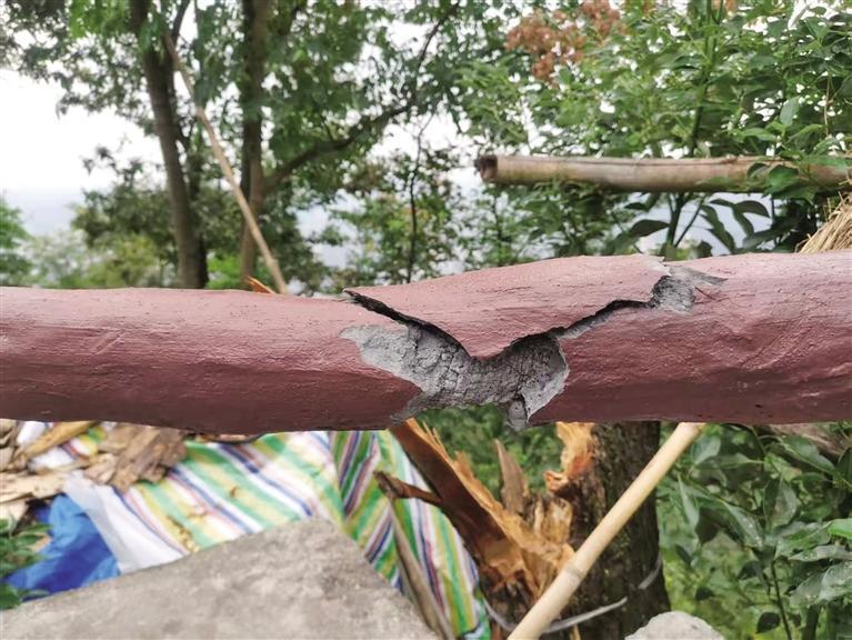 一個周末,記者例行登山健身,恰巧碰到白云寺的工作人員,便向其詢問緣由。對方解釋道,護欄的這幾處破損并非人為所致,而是坎下的一棵老樟樹經不住風雨侵蝕,逐漸傾倒后壓在護欄上,導致部分護欄斷裂、破損。