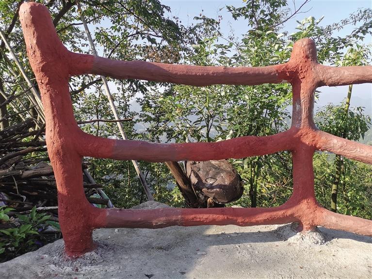 11月13日,難得的晴日。記者在吉首市乾州仙鎮山山頂的白云寺坪場上看到,太陽能燈桿旁、今年夏天剛完工的護欄上,幾處破損已被修復。盡管修補處與原護欄顏色相近,仍能清晰看出修復痕跡。