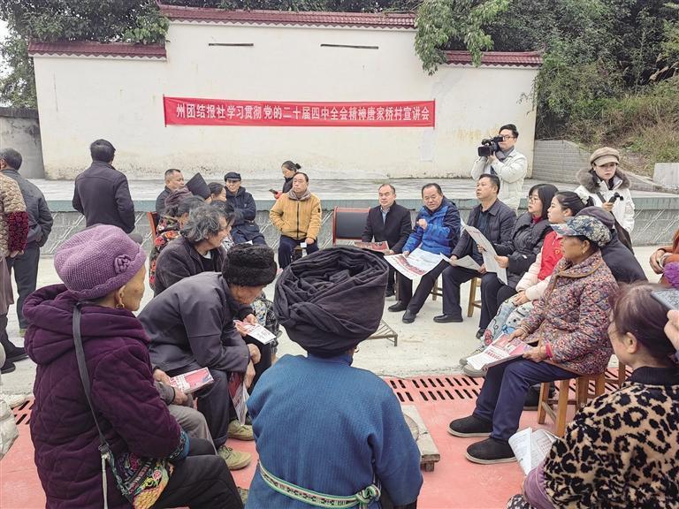 湘西網11月19日訊(全媒體記者 田華 通訊員 陶詩瑤 黃語晴 張志樺)11月18日,鳳凰縣落潮井鎮唐家橋村小運動場上人頭攢動、熱鬧非凡,州團結報社聯合落潮井鎮機關黨支部及相關單位,開展黨的二十屆四中全會精神宣講暨“醫保宣傳踐初心·黨群服務暖民心”主題黨日活動,將黨的創新理論、惠民醫保政策與貼心便民服務送到群眾“家門口”。