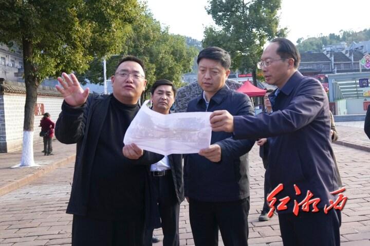 劉濤在鳳凰古城察看市政污水管網維修、歷史建筑修繕、門牌楹聯安裝、街區環境整治等情況。團結報全媒體記者 劉煒 攝
