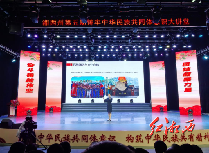 湘西網12月4日訊(全媒體記者 李再興 通訊員 鄧應順)12月2日晚,湘西州第五期鑄牢中華民族共同體意識大講堂在吉首舉行,旨在深入學習貫徹習近平總書記關于加強和改進民族工作的重要思想,號召全州各族干部群眾向民族團結進步模范集體和模范個人學習,匯聚起鑄牢中華民族共同體意識的磅礴力量,推動全州民族團結進步事業深入發展。州委書記劉濤、州人大常委會主任吳凌頻和受表彰的全國、全省民族團結進步模范集體和模范個人參加。