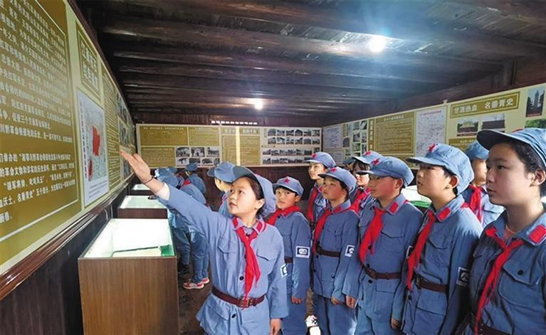 龍山縣小小講解員在湘鄂川黔革命根據(jù)地紀(jì)念館講解黨史。