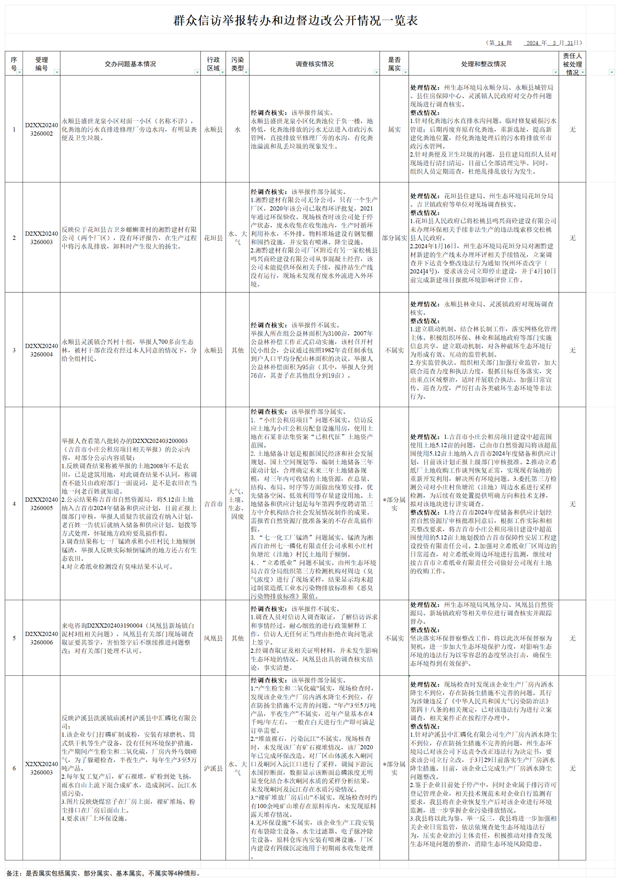 群眾信訪舉報轉辦和邊督邊改公開情況一覽表(3月31日)
